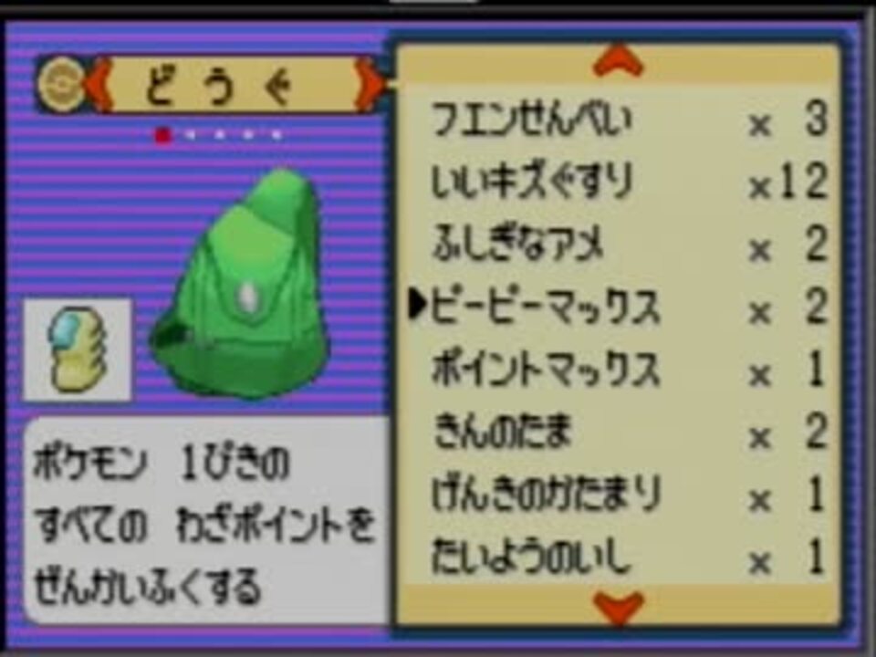 ヒントをもらって出口の方向を教えてもらったらそちらに進んでください。 エメラルドでは ポケモン の画面を出してから閉じると2秒間動かない仕様があるのでバトルピラミッドでは必須テクとなります。 野生の ポケモン について ピラミッド内の野生教え技やアイテム引き替えに困らないくらい溜めておこう。 エメラルド単体で入手できるのも魅力。 ポケモンに技を命令することが出来ない。